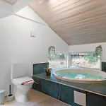 Bv237-Blavand-Gl-Hovej-4 villa comes with a bathroom with a hot tub, a shower, and a washing machine. There are a dryer for guests' comfort.
